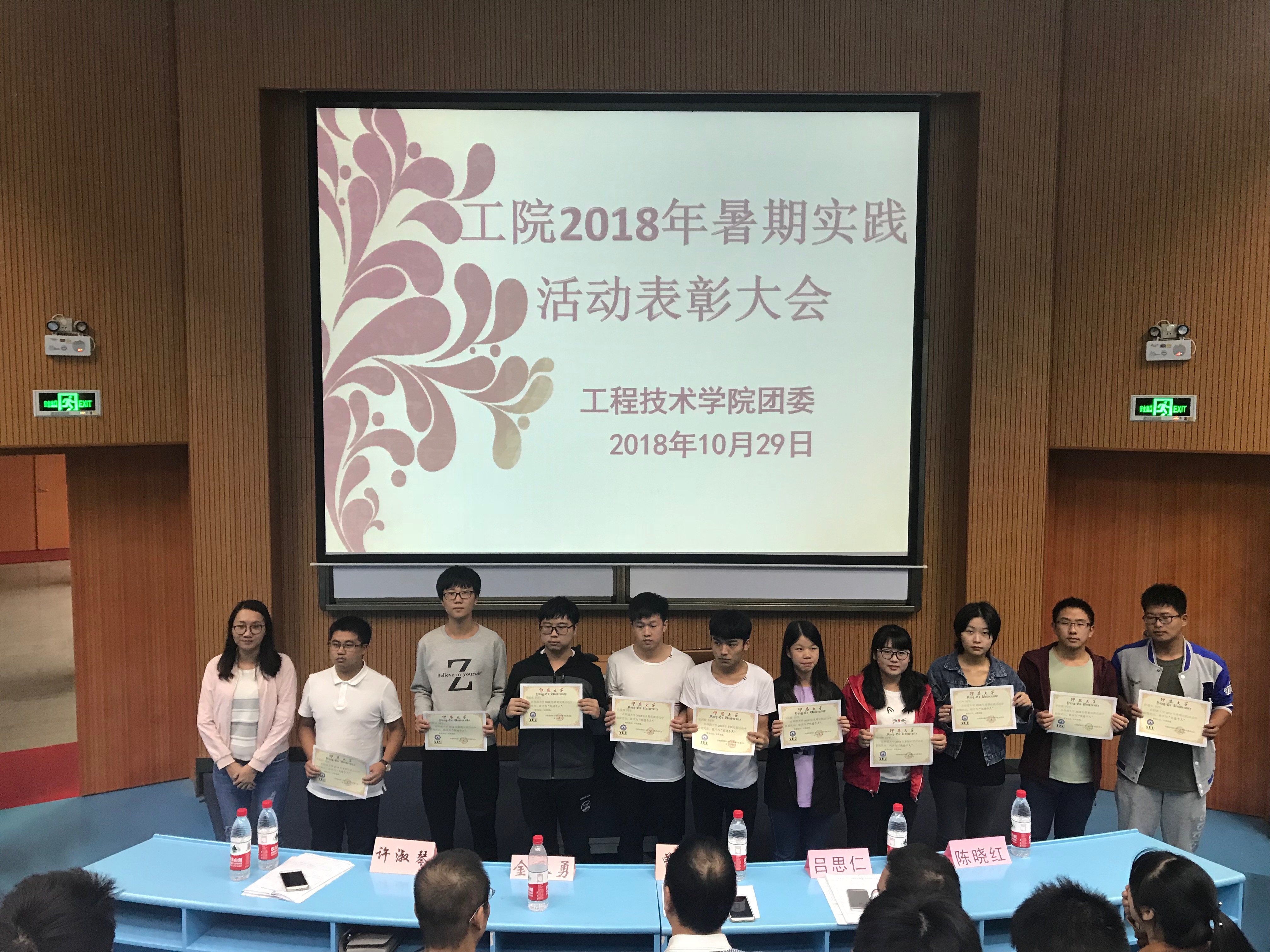 10月29日下午4点,开云kaiyun官网团委在和昌求是讲堂举行开云kaiyun官网2018年暑期实践活动表彰大会,学院党总支书记兼副院长曾凤生老师,学院常务副院长金承勇老师,学院党总支副书记吕思仁老师,学院团委书记许淑琴老师,学院学生会指导老师陈晓红老师,2018年全体工院新生及获奖人员出席本次大会。