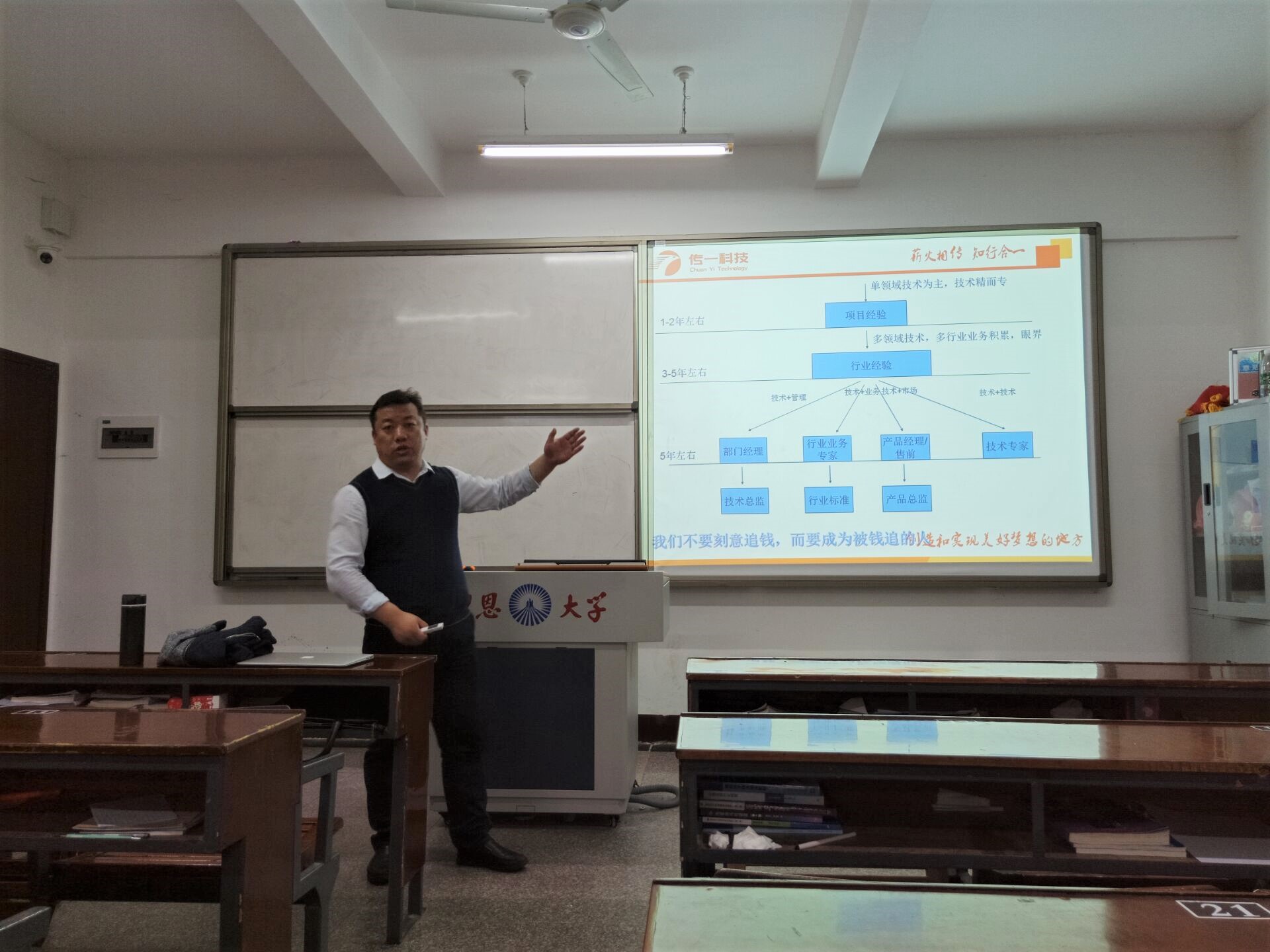 主讲人吴峰凭借着自己丰富的经验和阅历,给学生们讲解了当今时代IT行业的就业形势和未来前景,并对在场学生提出了以下几点期望:第一,期望同学们扩大知识面,提升专业技能;第二,期望同学们注意把自己的所学专业和社会需求相结合起来,注重实际技能的培养。除此以外,吴峰老师还强调了个人简历的重要性。此次讲座资料丰富多彩,语言生动幽默且具有哲理,同学们均感到受益匪浅。