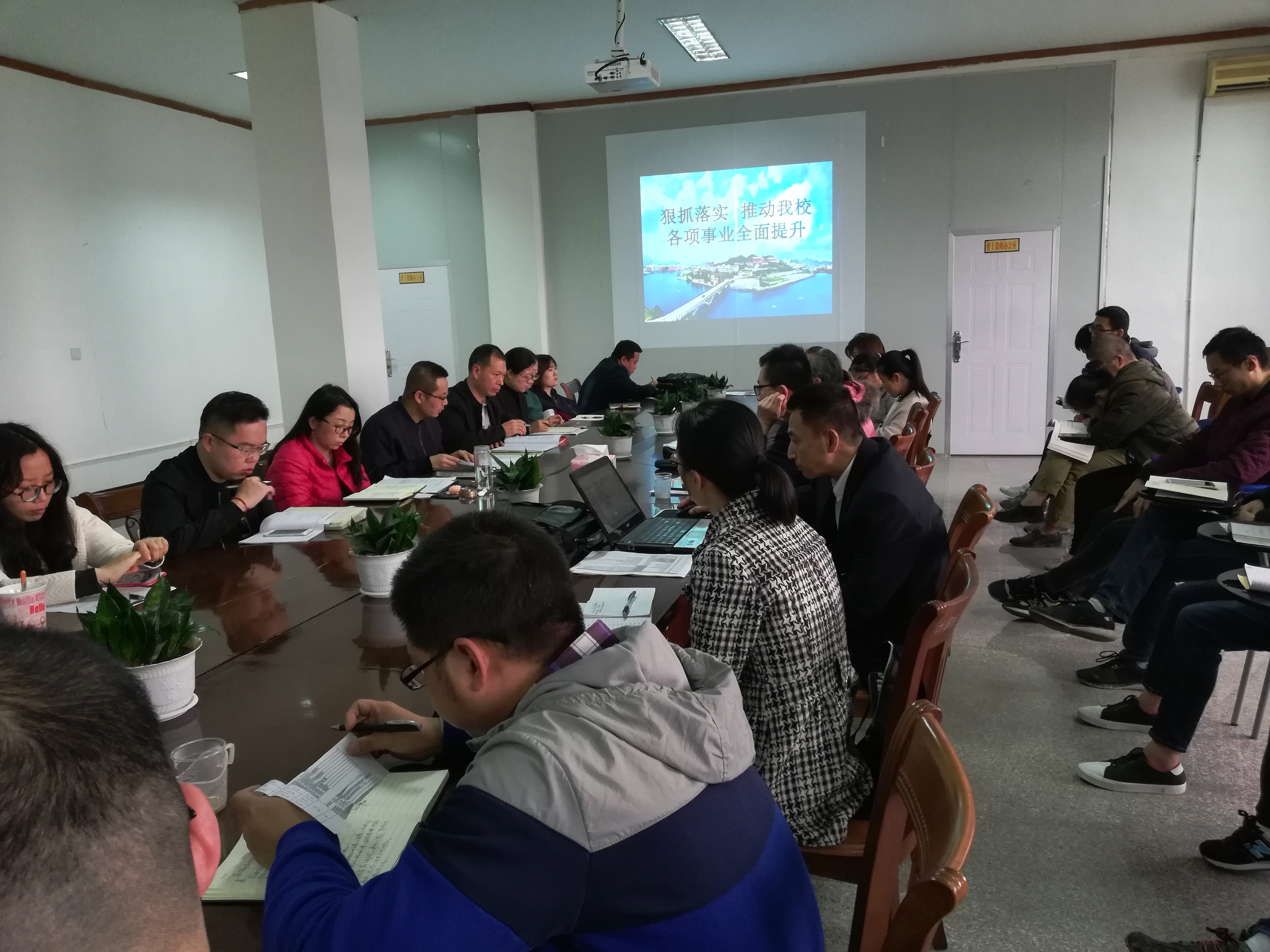 4月17日下午,开云kaiyun官网组织全体教职工在泽钏楼四楼会议室学习我校一届四次教代会“狠抓落实 推动学校各项事业全面提升”的工作报告”,会议由常务副院长金承勇主持,全体教职工出席本次会议。