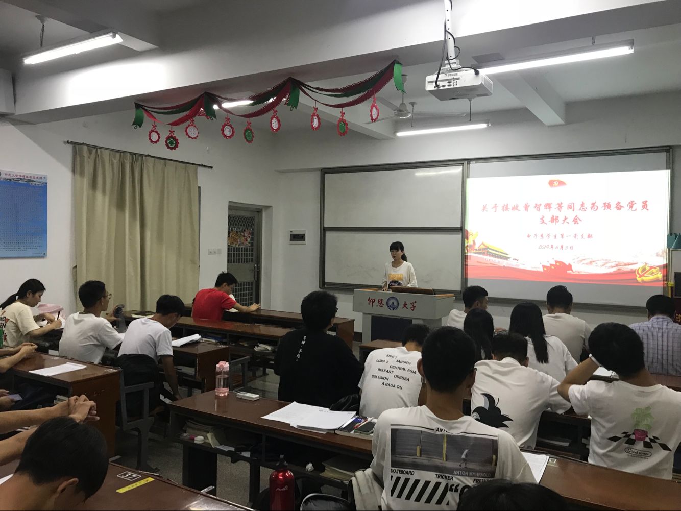 吸纳优秀学生,壮大党员队伍,为支部发展添砖加瓦。6月5日晚19:30,电子系学生第一党支部接收预备党员大会在共和楼215举行,大会由支部书记赵宏岩主持,支部全体党员、预备党员参加此次会议。