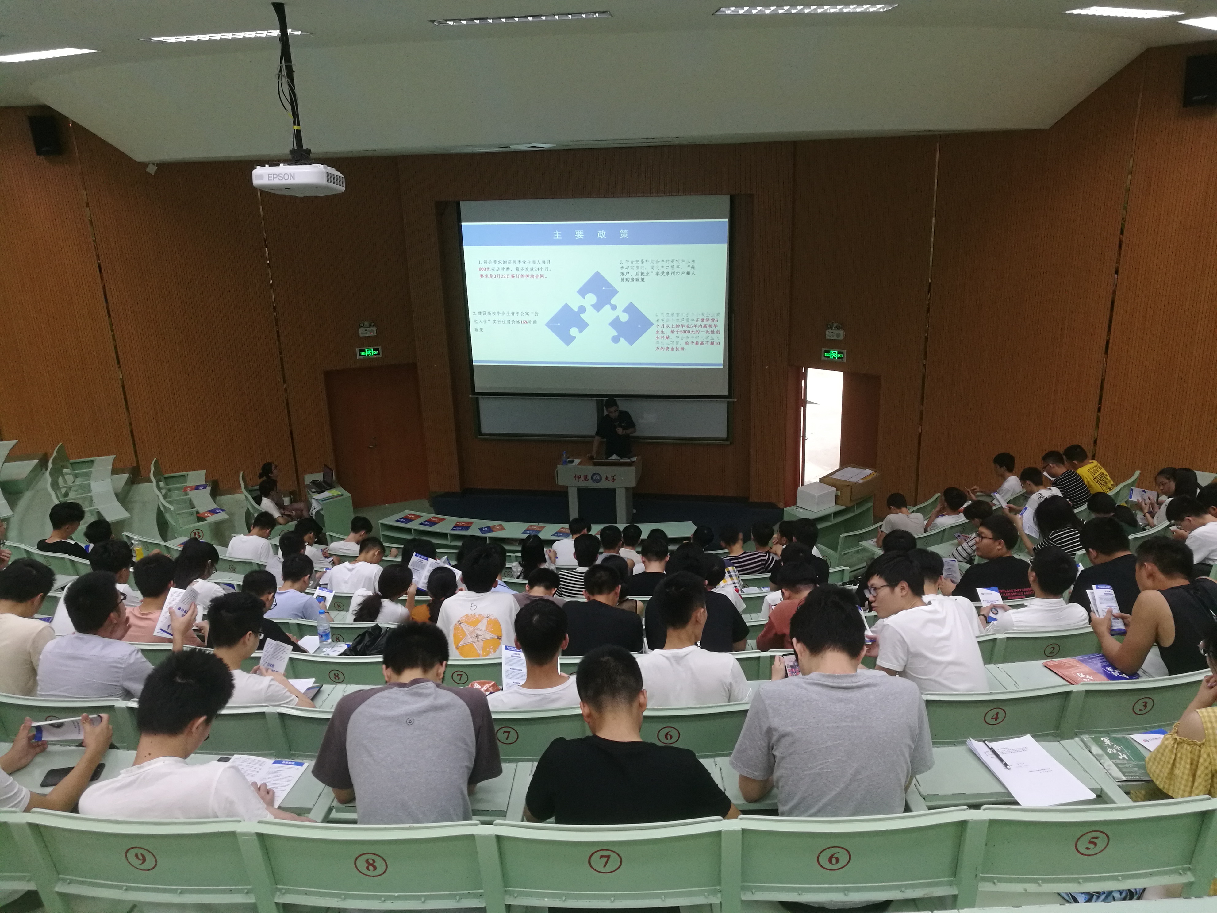 宣讲会上,毕业班辅导员王茂伟从《实施意见》的出台背景、政策亮点,以及享受政策的基本条件、安居补助、租房服务、创业贷款、税收优惠、放开落户限制等11个方面为毕业生详细解读政策,答疑解惑。不少高校毕业生在参加完宣讲会后表示:“泉州真是个爱才重才的城市,政策干货足、服务很周到,毕业后将把泉州作为首选落脚城市。”