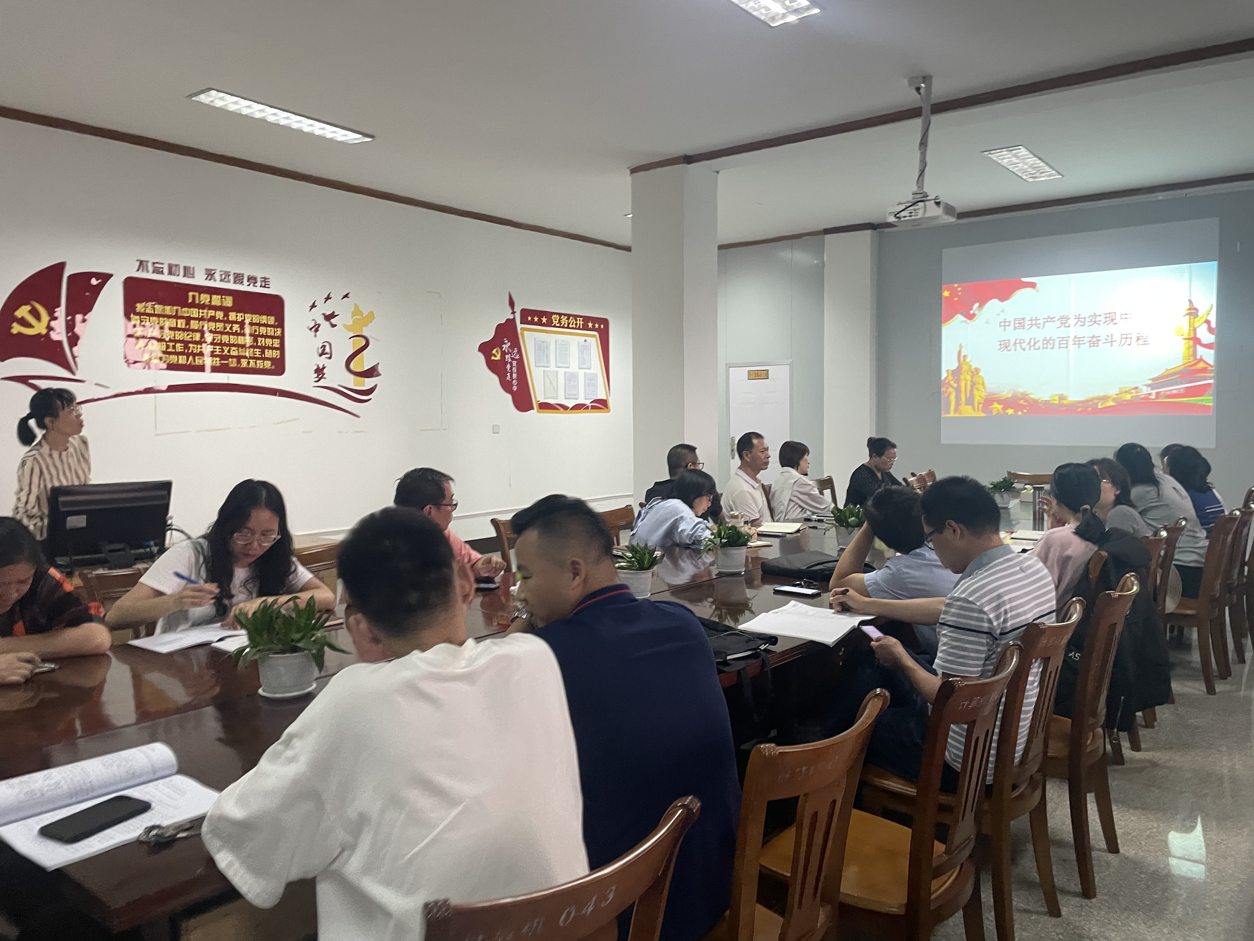 5月12日下午,教工党支部全体党员在泽川楼四楼会议室开展了题为《中国共产党为实现中国现代化的百年奋斗历程》的党史专题学习。