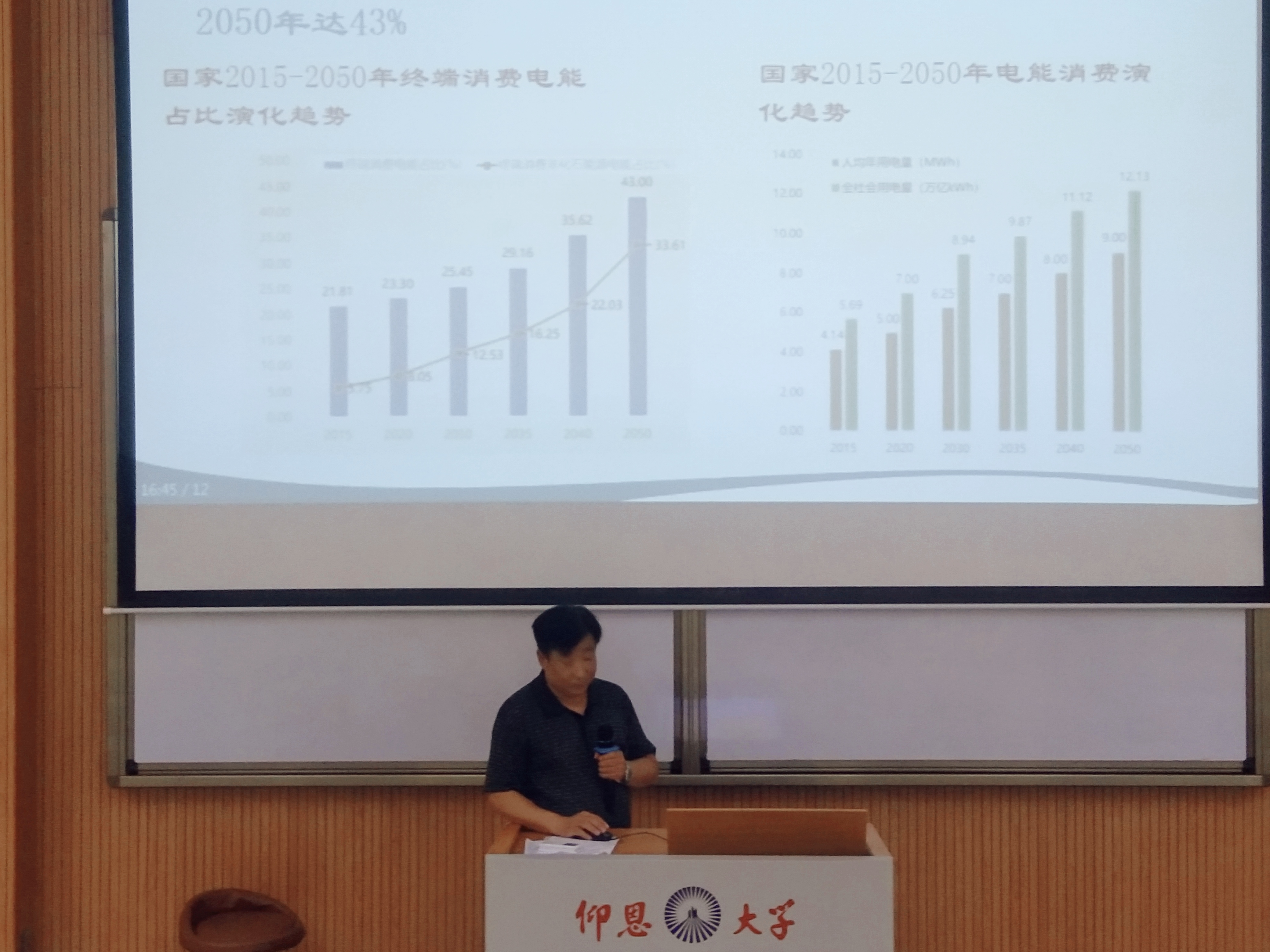讲座持续近两个小时,王教授首先回顾和展望了三代电网(电力系统)不同发展阶段的发展模式和主要特征,提出当前的电力系统正是第三代电力系统的初级发展阶段,并解释了新一代电力系统的主要特征和关键指标。随后王教授通过大量实例向在场师生深入地分析了新一代电力系统的发展趋势、技术特征、关键技术三部分内容。最后王教授总结了电网发展结构模式特征和电网发展的技术特征。