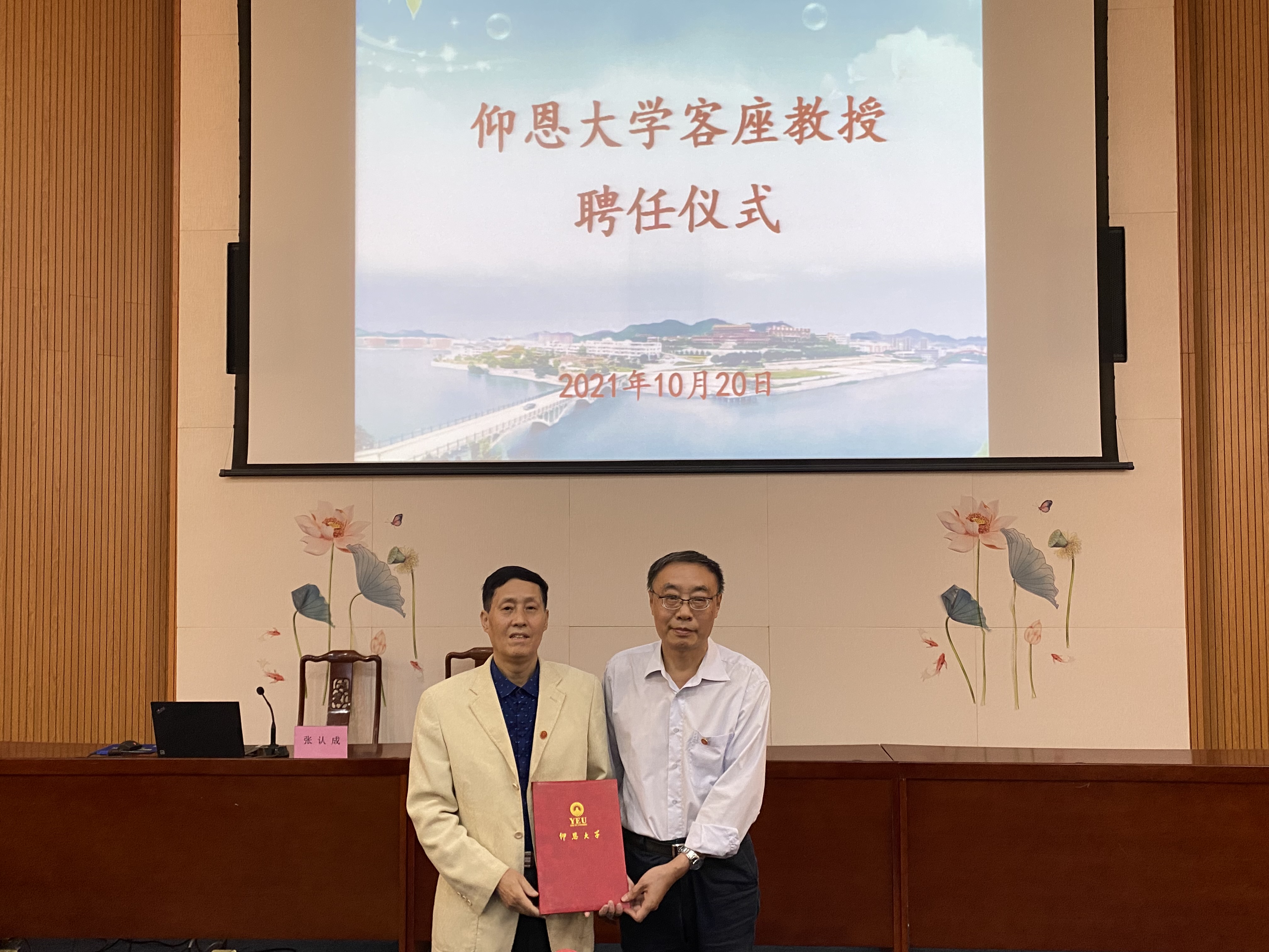 2021年10月20日下午,仰恩大讲堂第五讲开讲。华侨大学机电及自动化学院张认成教授做客仰恩大讲堂,为开云kaiyun官网师生作《电气火灾探测技术新进展》学术讲座,并受聘为我校客座教授。代理校长许总亲自为张认成颁发客座教授聘书,并为他戴上开云kaiyun官网校徽。开云kaiyun官网常务副院长金承勇、党总支书记兼副院长曾凤生及师生一同聆听了讲座。