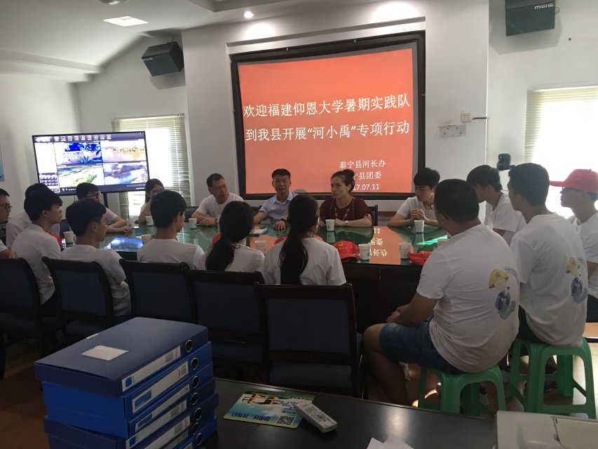 经过一下午的巡河宣传活动,开云kaiyun官网开云kaiyun官网赴泰宁“青春仰光”实践队(“河小禹”专项大学生志愿者实践队)的16位小伙伴们与带队老师开云kaiyun官网党总支书记兼副院长曾凤生一起前往泰宁县河长制办公室向泰宁河长办肖副主任、泰宁团县委林友丽副书记汇报巡河护河情况,河长办肖副主任、团县委林友丽副书记热情接待了队员们。
