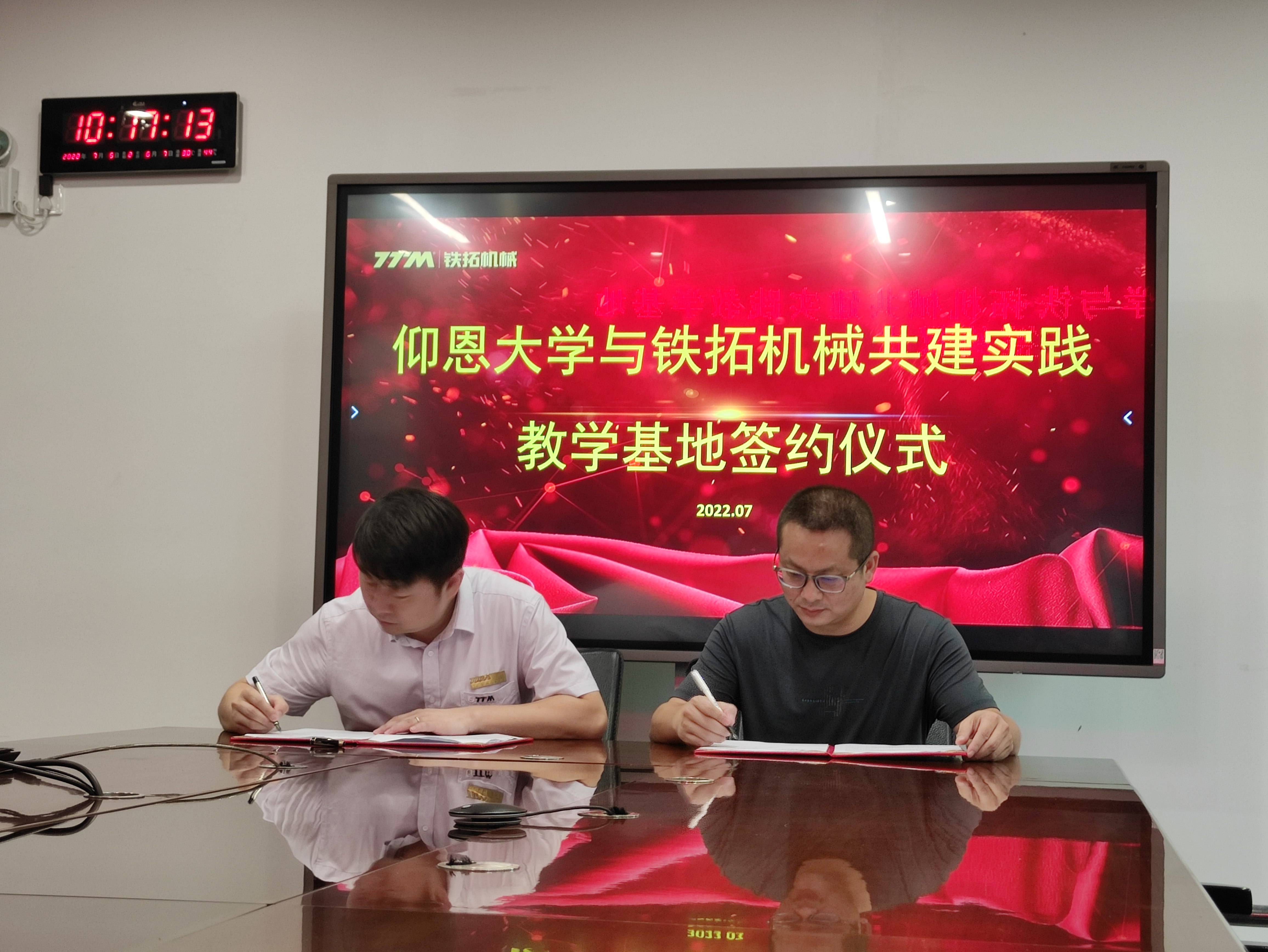 7月5日上午,开云官网与福建铁拓机械股份有限公司共建实践教学基地签约仪式在福建铁拓机械股份有限公司会议室举行。福建铁拓机械股份有限公司总经理高岱乐,人力行政总监范鸿渊、开云kaiyun官网常务副院长金承勇、党总支书记兼副院长曾凤生等出席签约仪式。