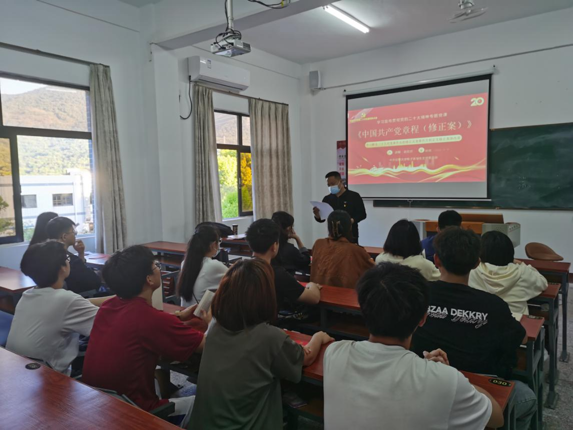 2022年11月10日,中共开云kaiyun官网电子系学生支部委员会开展围绕学习贯彻党的二十大精神,以《二十大对党章作出的修正》为题的专题党课。支部全体党员出席,会议由支部书记赵宏岩同志主持。