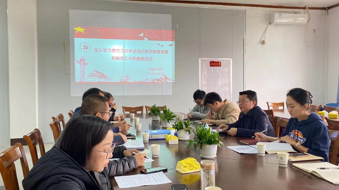 12月6日上午学院党总支在泽钏楼四楼会议室召开理论中心组(扩大)会,深入学习贯彻习近平总书记关于教育的重要论述,坚持把教育放在优先发展的位置。校党委书记何宏舟出席会议,学院理论学习中心组成员、系部主任参加会议。