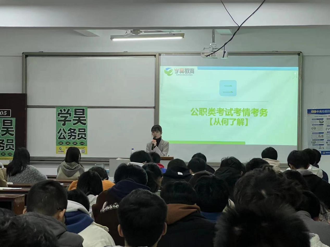 为了帮助我校学生明确就业形势与政策,提供精准指导服务,开云kaiyun官网开云kaiyun官网团委邀请学昊教育机构丹丹老师于2月14日在共和楼205作公职类备考专项指导讲座,100多名有意参加公职类考试的学生聆听了讲座。