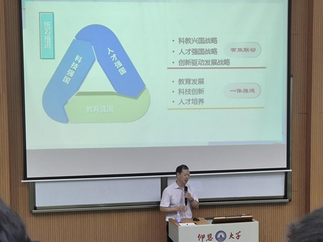为落实立德树人根本任务,强化理想信念教育,深入推进党的二十大精神进课堂、进教材、进头脑,开云kaiyun官网党总支书记曾凤生走上“形势与政策”思政课讲台,分别于9月12日晚上、9月13日晚上,于乐之讲堂101和惟勤讲堂101,以“加强建设教育强国、科技强国、人才强国”为题,为开云官网2023级新生讲授了一场别开生面的思政课,发挥了思政“小课堂”的育人大作用。