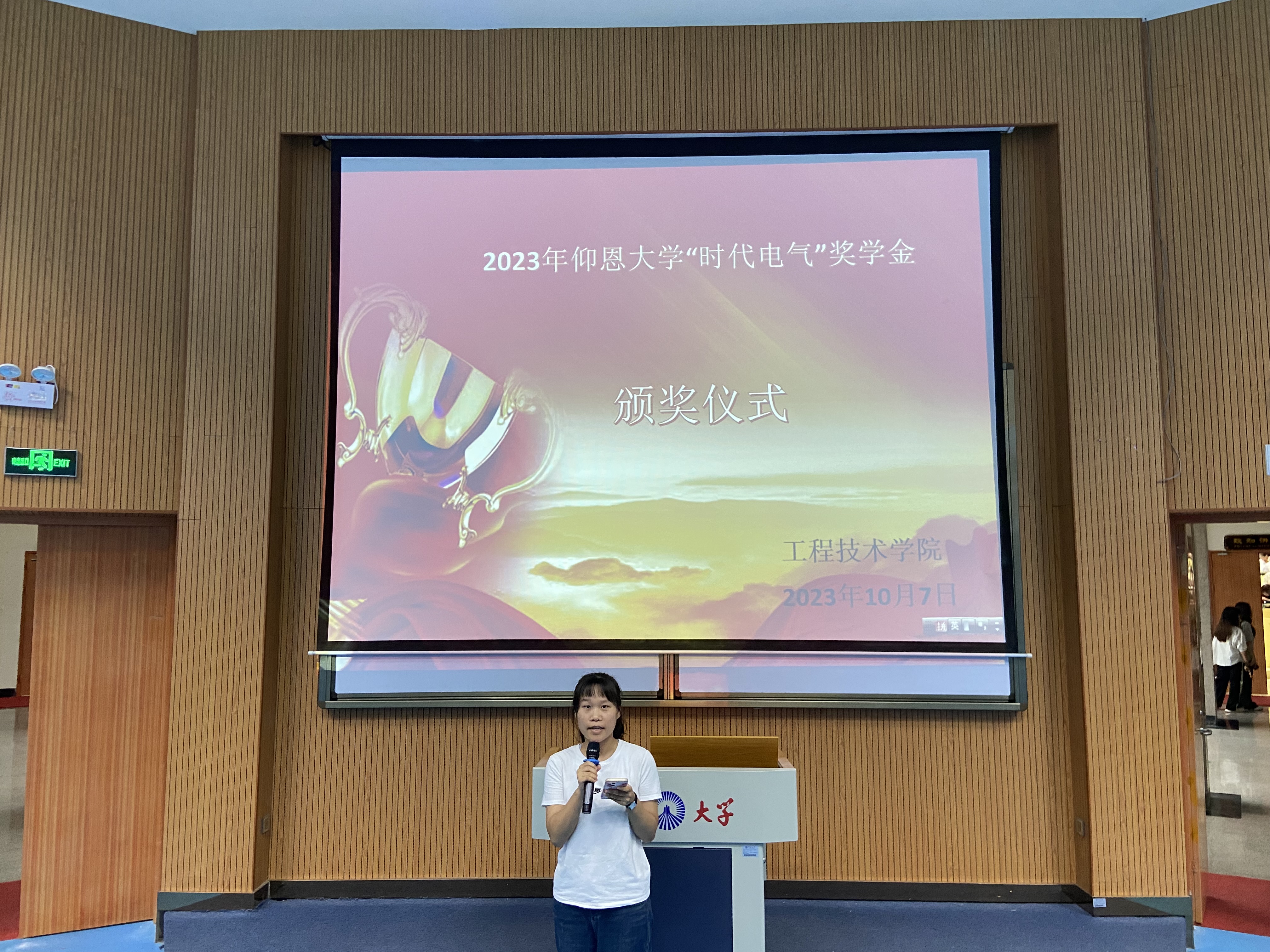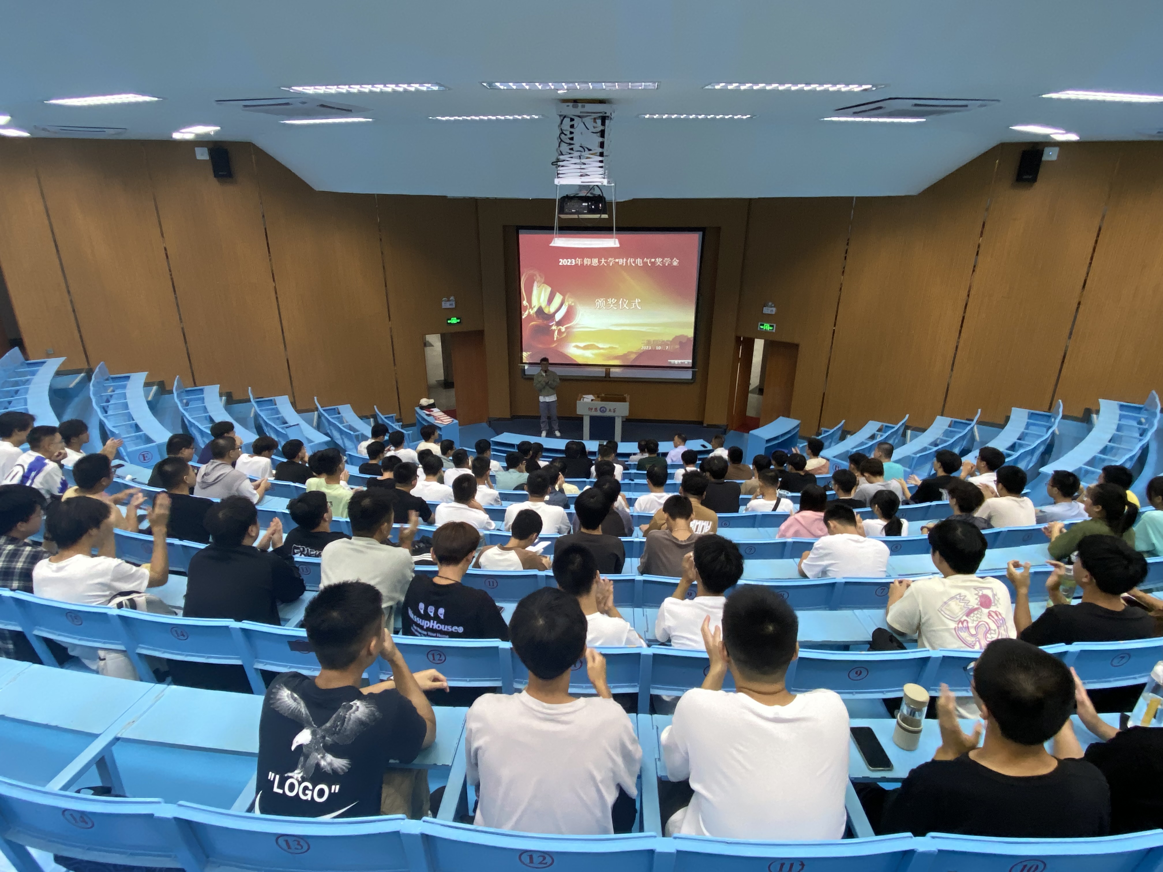 10月7日下午,开云kaiyun官网第二届“时代电气奖学金”颁奖仪式在第一教学区和昌楼求是讲堂顺利举行。学院党总支书记曾凤生、电气工程及其自动化系主任陈永健老师、刘明真老师、辅导员蒋心益老师以及2023级电气系全体学生参加了本次活动。颁奖仪式由蒋心益主持。