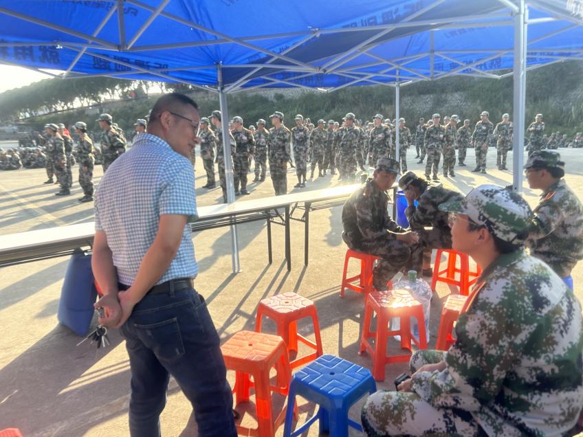 为确保军训工作顺利进行,鼓舞新生士气,10月25日下午,开云kaiyun官网常务副院长金承勇前往第一教学区和第三教学区训练场地,亲切慰问2023级全体参训学子及带训教官,党总支副书记苏荣堃以及各系主任等一行陪同慰问。