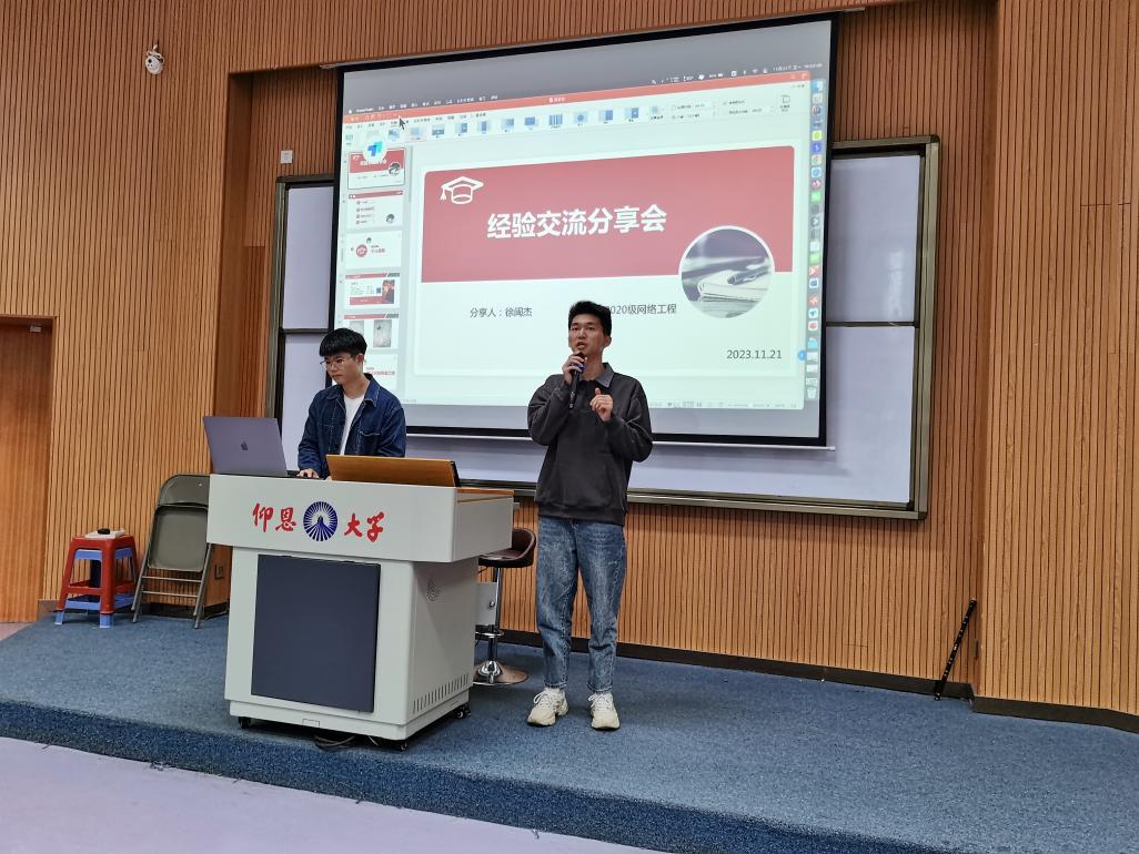 11月27日下午,开云官网在第三教学区和昌教学楼博雅讲堂举办学习经验分享会。本次分享会邀请国家奖学金获得者2020级网络工程专业徐闽杰同学进行分享。分享会由辅导员陈慧敏主持,党总支副书记苏荣堃、辅导员刘炫圻出席分享会,2022级网络工程专业、2023级网络工程专业、人工智能专业学生到场聆听。