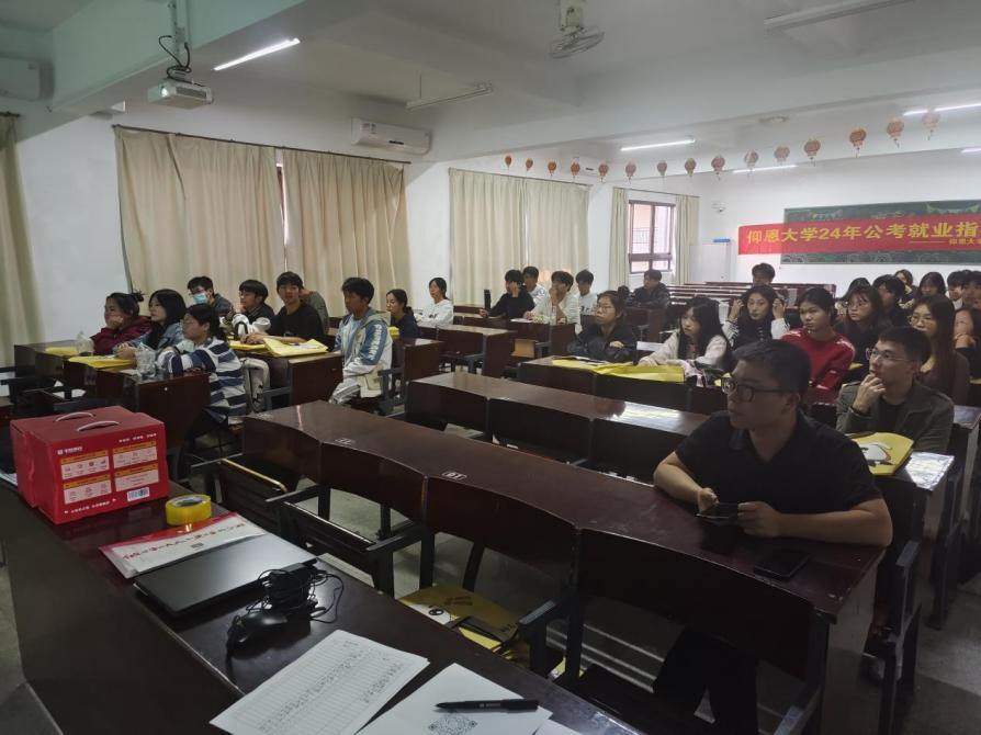 11月16日下午,开云kaiyun官网于第三教学区仰恩教学楼B2-203教室开展公务员就业指导讲座。本次讲座邀请华图教育讲师吴生进行主讲,学院各年级部分学生参加。