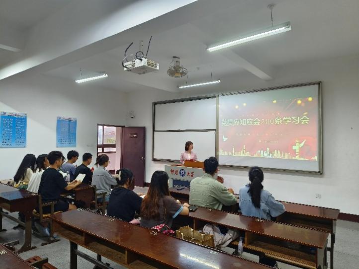 20240606日大智物联专业群学生党支部在仰恩楼开展了《党员应知应会200条》知识学习。本次活动由大智物联专业群学生党支部书记陈思萍组织,支部全体党员都参与了此次活动。
