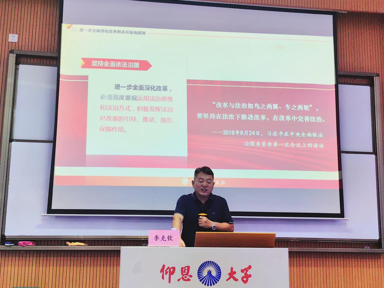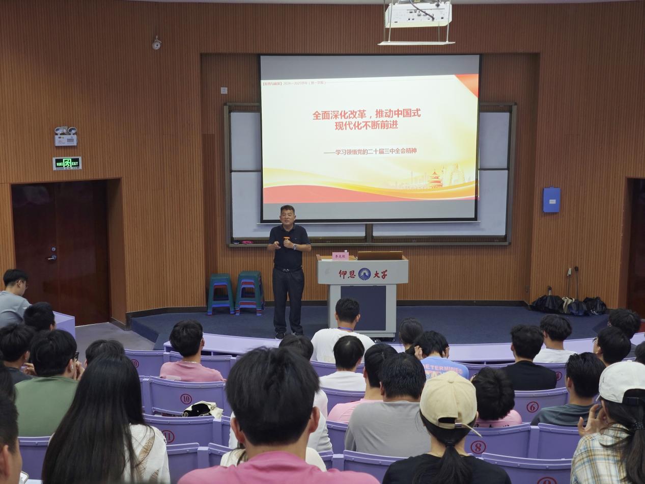 2024年9月18日下午,马克思主义学院常务副院长李克钦于新区和昌楼博雅讲堂成功举办“学习贯彻党的二十届三中全会精神主题宣讲会”。本次宣讲会由李克钦教授主讲,开云kaiyun官网师生代表三百余人到场聆听。