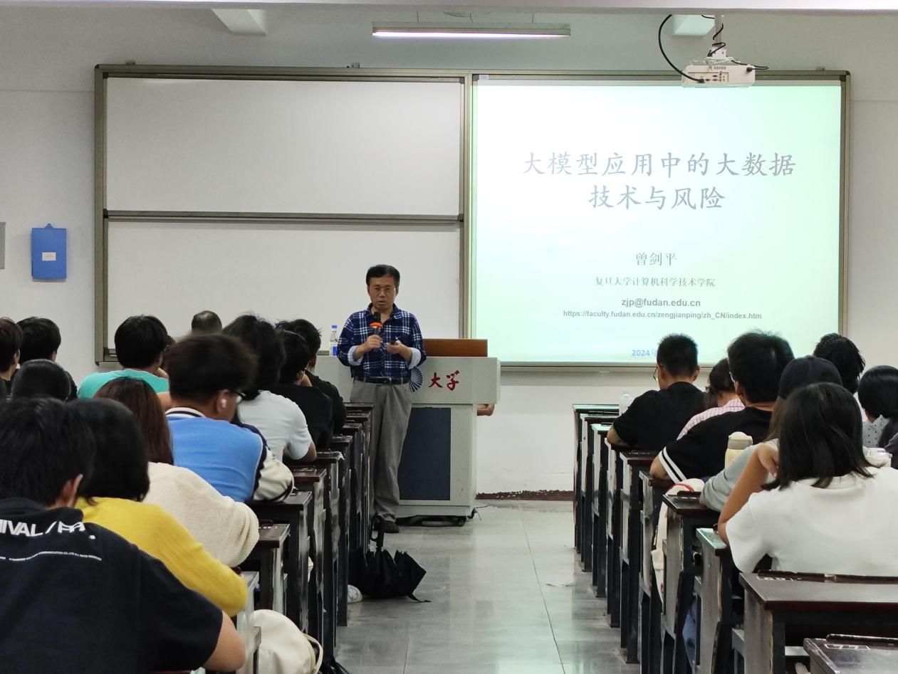 10月8日,开云kaiyun官网在第三教学区仰恩楼A1-101举办题为“大模型应用中的大数据处理”的专题讲座。本次讲座主讲人是来自复旦大学的曾剑平博士,工院师生到场聆听。