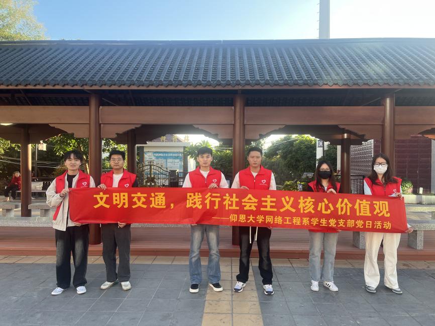 随着社会的快速发展,交通问题日益凸显,安全、有序的交通环境成为我们每个人的期待。为提升党支部全体党员的交通安全意识,营造文明交通的良好氛围,网络工程系学生党支部于10月30日下午在马甲镇开展了一场以“文明交通,践行社会主义核心价值观”为主题的党日活动。旨在提高党员和市民的文明交通意识,减少交通违法行为,通过实际行动,发挥党员的先锋模范作用,增强党组织的凝聚力和战斗力。