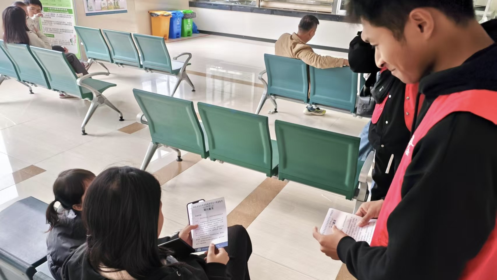 此外,志愿者们还向患者和家属发放有关健康知识的海报,详细讲解常见疾病的预防措施以及健康生活方式的养成要点,让患者和家属对健康知识有了更深入的了解,进一步提升了他们的疾病预防意识。