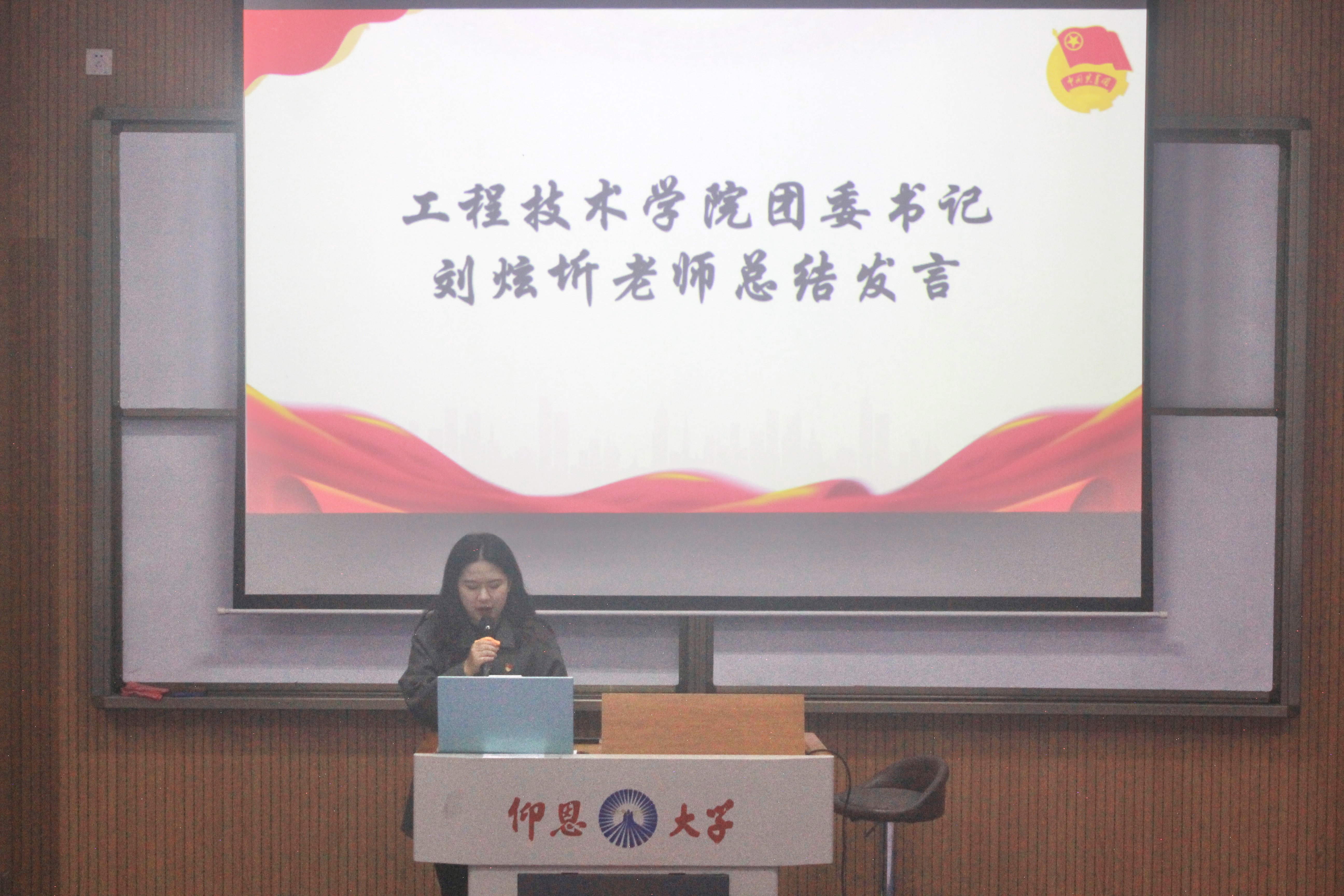 大会最后,院团委老师进行总结发言。回顾了过去一年团委工作的点点滴滴,更对新一届团委提出了殷切期望,希望我们的新任干事能够从前辈们手中接过重担,戒骄戒躁,成为团委中的得力干将!