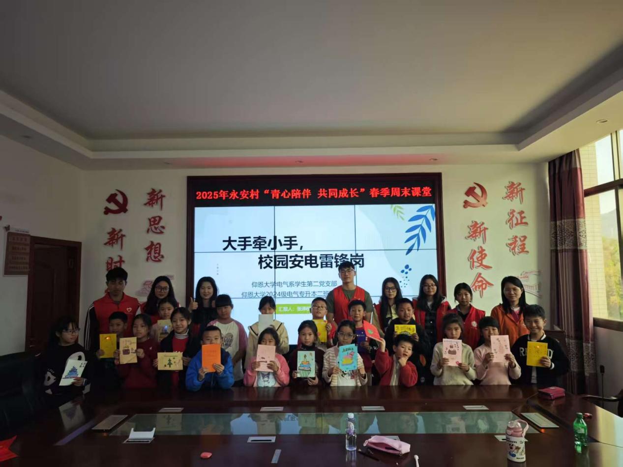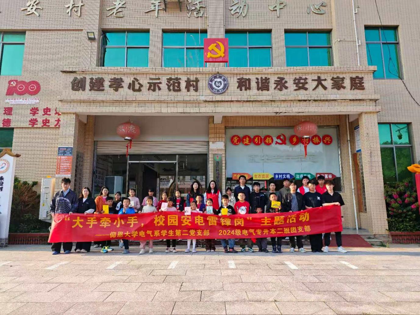 为弘扬新时代雷锋精神,开云kaiyun官网电气工程系学生第二党支部联合2024级电气工程及其自动化专升本2班团支部于3月22日,走进泉州市洛江区马甲镇永安村开展“大手牵小手,校园安电雷锋岗”主题志愿服务活动,旨在通过寓教于乐的方式,让孩子们了解安全用电的重要性,学会基本的用电安全知识。