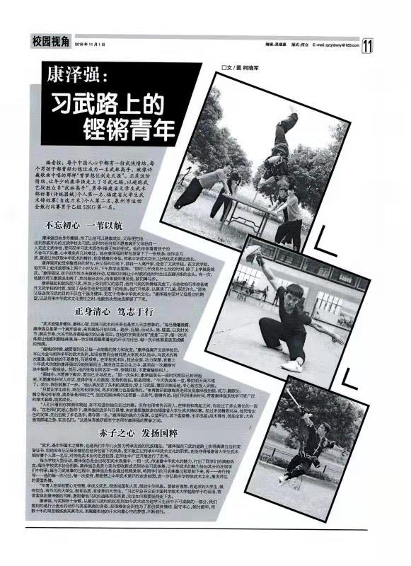 【泉州青年报】康泽强:习武路上的铿锵少年