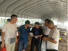 下午3:00,烈日当头,专家团成员冒着酷暑炎热,到村扶贫代养基地——河南省沈丘县鑫图种植专业合作社现场指导特色鸡养殖。专家团成员首先查看了养殖场温度控制、通风、密度和鸡群饲养状态等。针对当前存在的温度高、密度大、扩群、饲料营养等问题提出了具体解决方案。同时,赵庆枫博士现场解剖了死鸡,给出了夏季酷暑饲养鸡具体防治措施和免疫程序。合作社理事长陶长磊表示,听了赵博士的讲解,就如何进行夏季饲养鸡管理已经知道如何做了,并对专家的悉心指导表示衷心和诚挚的感谢。