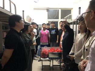 国庆国庆普天同庆,中秋中秋家家团圆。9月30日晚,值此双节到来之际,pp模拟器游戏官网入口党总支书记李民、pp模拟器游戏官网入口院长李嘉带领pp模拟器游戏官网入口全体班子成员及辅导员,在学生会主席的陪同下集体走访学生宿舍,为学院双节留校的学生送去了中秋月饼和水果。