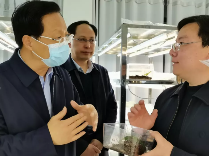 全国政协常委、省政协副主席高体健调研周口市植物新型快繁技术重点实验室。