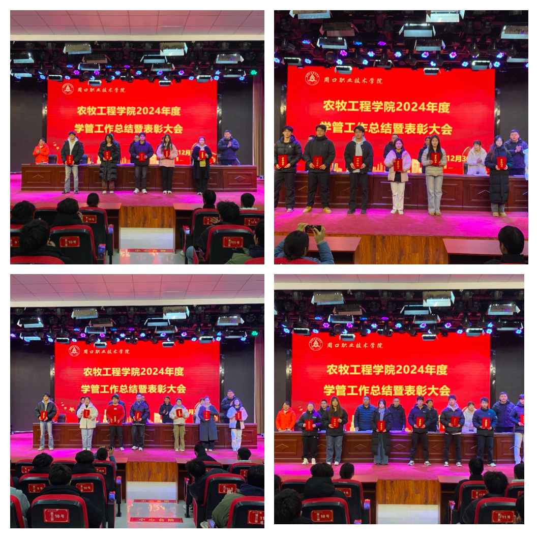 颁奖环节中,学院领导为 2024 年在各项活动中获奖的学生代表颁发荣誉证书,表彰他们在过去一年中的优秀表现和突出贡献,现场掌声雷动,气氛热烈。