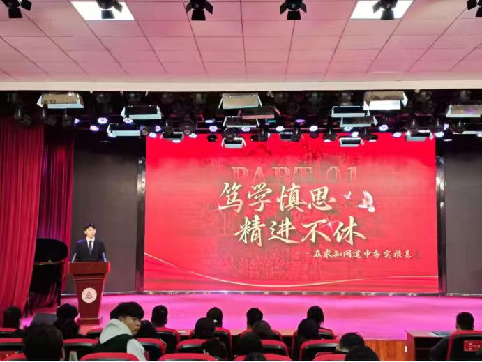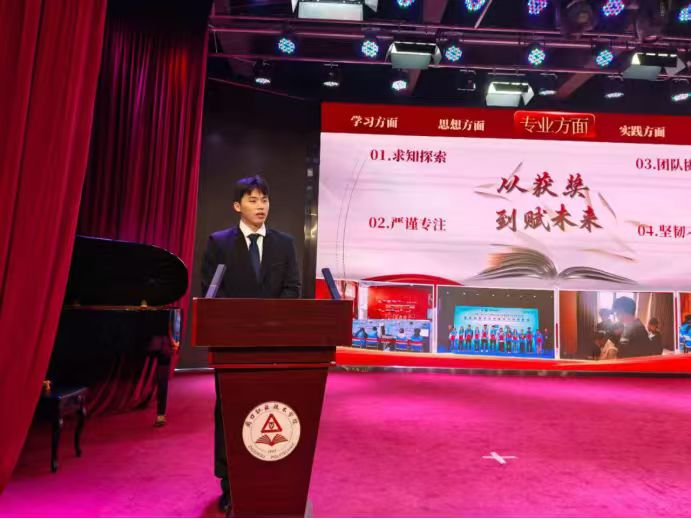 会议伊始,来自不同学院的11名国奖获得者代表登台汇报,他们围绕学习经验、竞赛历程、青春践行等方面分享经历感悟。通过讲解高效学习法、讲述赛事攻坚经历、分享实践方法与经验等展开分享,其中,我们pp模拟器游戏官网入口的国奖获得者张增辉同学以“笃学慎思,精进不休——在求知问道中夯实根基”为主题,分享了他砥砺奋进的青春故事,其全面发展的卓越表现赢得了在场师生的广泛赞誉。