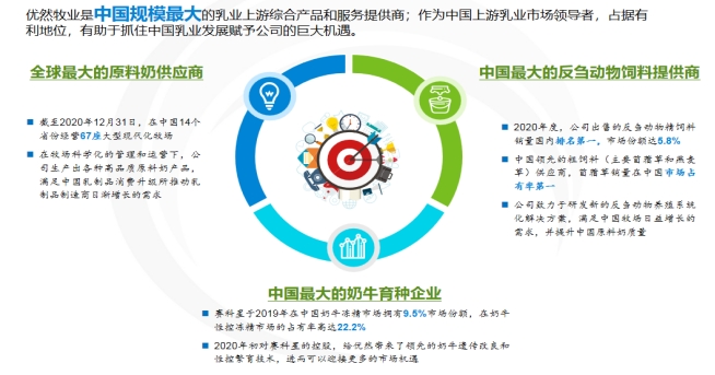 公司“种养结合”的有机经营模式,协调原料奶业务和饲料、育种等畜牧产品业务的共同运作,提升公司运营效率和规模的同时,赋能中国乳品行业。
