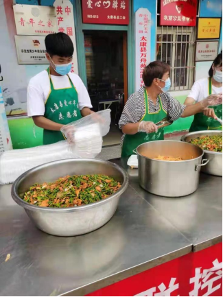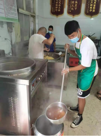刘冀海 20级畜牧兽医1班 “兵马未动,粮草先行”,为切实解决广大值守的工作人员吃饭困难问题,太康县成立了“太康县建南社区志愿者送餐队”。刘冀海积极主动报名参加了志愿者。主要工作给社区工作人员和志愿者配送三餐。“我每天五点钟起床开始准备当天要给志愿者们送的饭菜。但我不觉得辛苦,看见值守人员和志愿者接到我们的盒饭,我心里有种说不出来的开心”。刘冀海说到。志愿者们坚守在各个关卡,只是希望他们能吃的好一点。