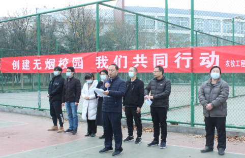 20211121日上午900,pp模拟器游戏官网入口在操场举行创建无烟校园 我们共同行动禁烟教育活动。参与本次活动的有pp模拟器游戏官网入口党总支书记李民、副院长王安、副院长李艺全体辅导员及全体学生,活动由杨改老师主持。