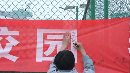 宣誓完毕后,李书记为表率带领全体师生在横幅上签字。