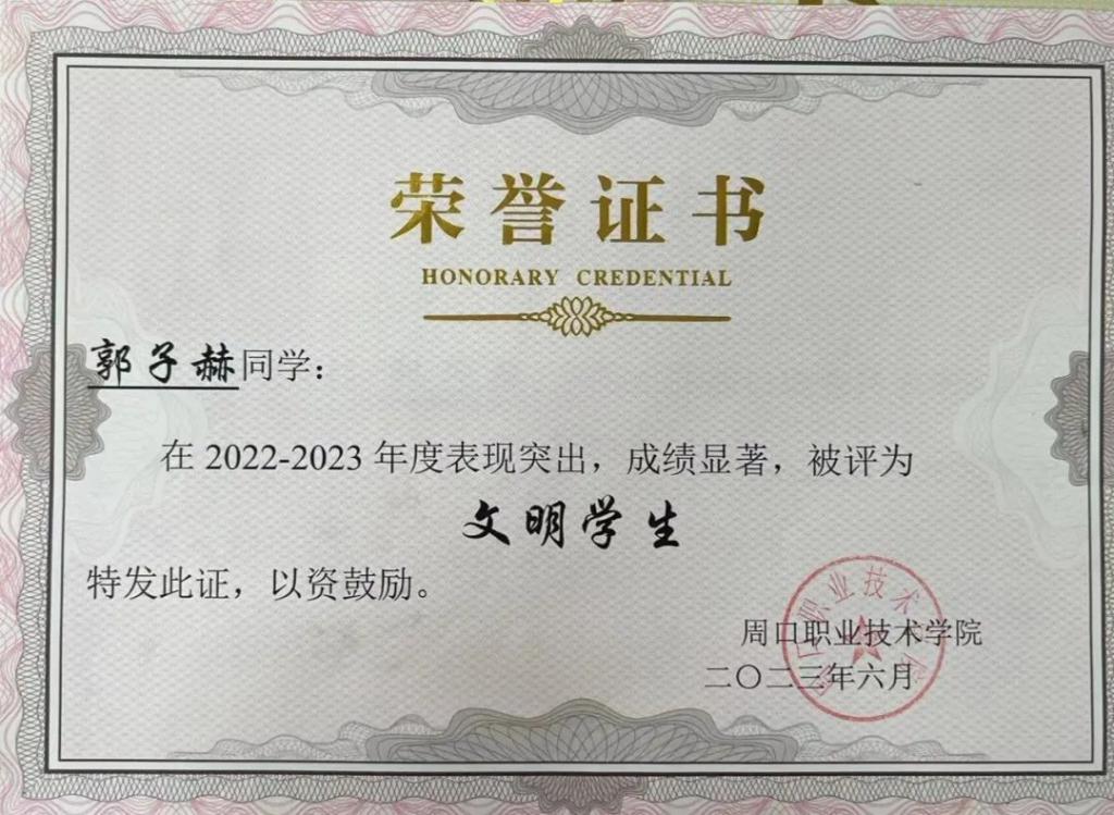 正是由于他的努力与坚持,郭子赫在大学期间获得了多项荣誉。这些殊荣不仅是对他努力的认可,更激励着周围的同学去追逐自己的梦想。